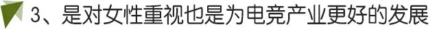 此后的1928年阿姆斯特丹奥运会首次允许女性参加,再然后的40、50年代,“女性运动”在全球发展,女运动员才开始得到尊重。到如今,女子网球等女性体育赛事,风靡全球。奥运会中的女子项目甚至比男子还多。这都是体育的进步,也是人类社会文明的体现。电竞与传统体育也一样,只不过是将数百年的历史浓缩。从男性主导到逐渐重视女性,侧面也在印证着电竞运动的逐渐成熟。
