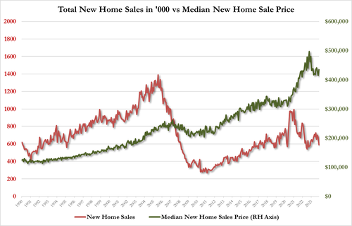 在高按揭贷款利率的背景下,房屋建筑商们持续采取多种措施刺激销售,包括降低房屋售价,降低按揭贷款利率等,以期部分抵消买家的压力。财经金融博客Zerohedge曾警告称,建筑商们无法永远这样填补当前30年按揭贷款利率与购房者支付的有效利率之间的这一差距,也即不可能无限度地补贴新屋以促进销售。因此,近两个月新屋销售滑铁卢,并不意外。