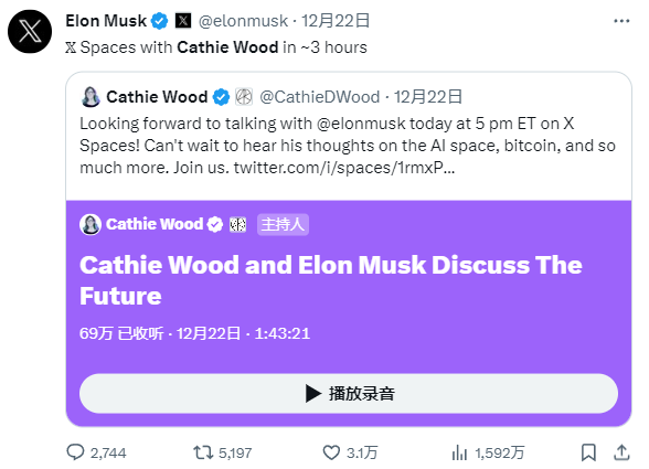 馬斯克對話“木頭姐”:指數基金規模過大了,不是所有企業都應該上市