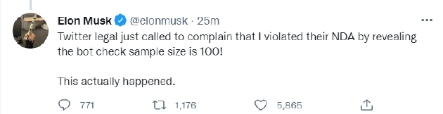 # 马斯克:推特说我泄露机器人样本量,违反保密协议