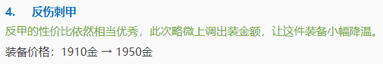 反甲涨价了啊,涨了40金币,算是小削弱。