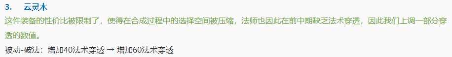 增加了20点法术穿透,中期出这件装备的法师伤害会增加一点点。