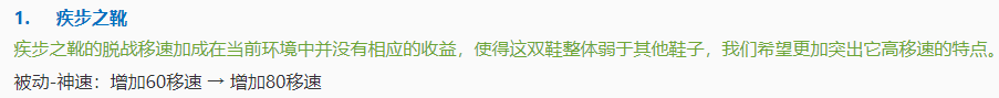 被动增加了20点移速,让跑图能力更强了。对于一些出疾步之靴的英雄来说是一个变相的小加强,比如 妲己、鬼谷子 。