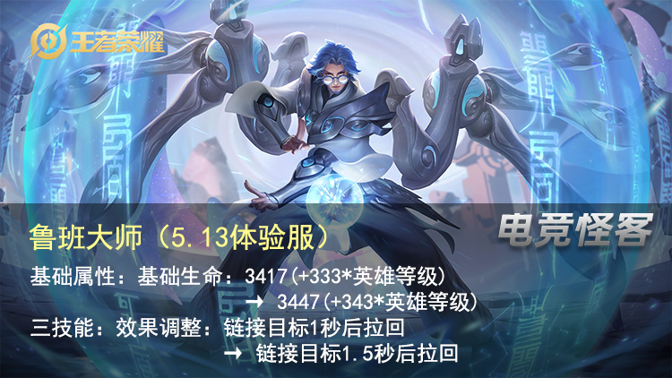 鲁班大师同样ban位坐穿的一位英雄,尤其是在高端局。这一次鲁班大师三技能被大幅削弱,从原本的“链接目标1秒后拉回”,改为了 “链接目标1.5秒后拉回” 。