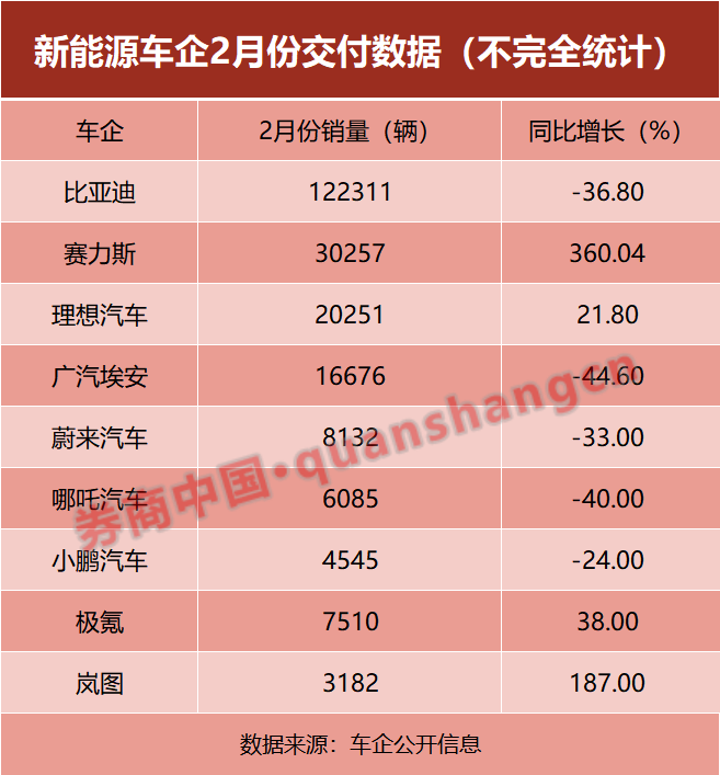 未经允许不得转载:新聚网 » 新能源車企大比拼!2月成績單批量出爐