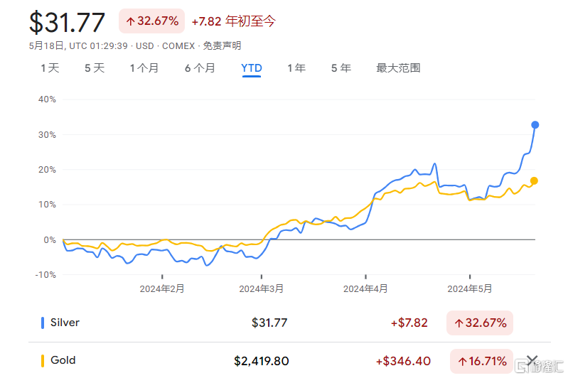 黄金无疑是“亮眼的仔”,但比黄金更猛的还有——白银。