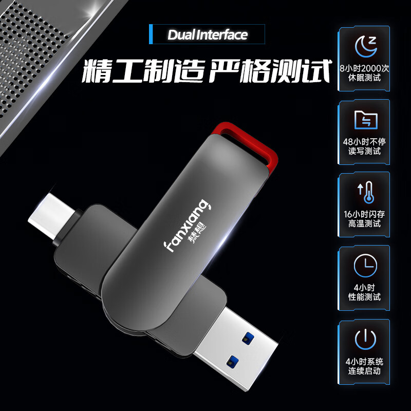 梵想固态 U 盘 FF520,优选长江晶圆 TLC 颗粒,USB-A、Tyep-c 双接口支持大部分智能设备,锌合金材质,支持“Win To Go”随身携带系统。