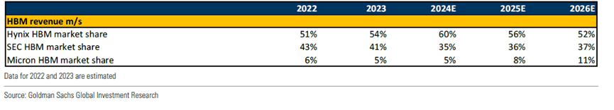 高盛预计,未来几年,SK海力士仍将是 HBM 的主要供应商,市场份额将保持在 50% 以上。
