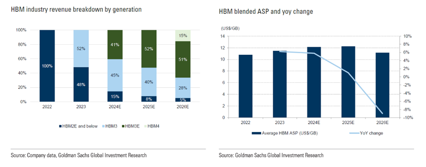 此外,由于供需持续失衡,HBM3E 的价格预计也将比 HBM3 高出 10-20%。高盛预计,这种价格溢价将至少持续到 2025 年。