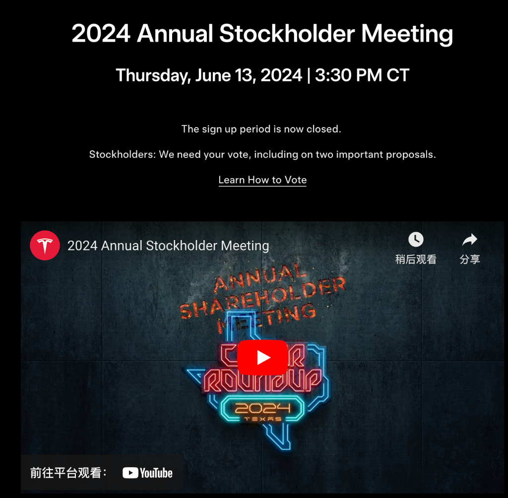 美东时间下周四(北京时间6月14日凌晨4:30),特斯拉召开了2024年股东大会,其中备受关注的一项是是投票表决首席执行官马斯克的560亿美元薪酬方案。