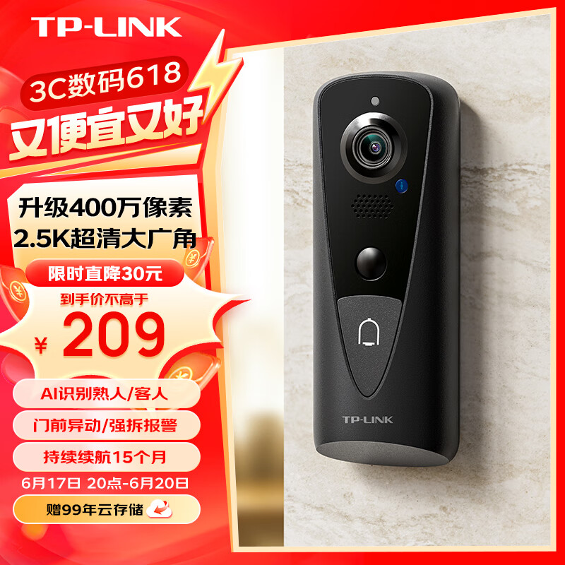 • 京东 TP-LINK 智能可视门铃摄像头 DB54H209 元直达链接