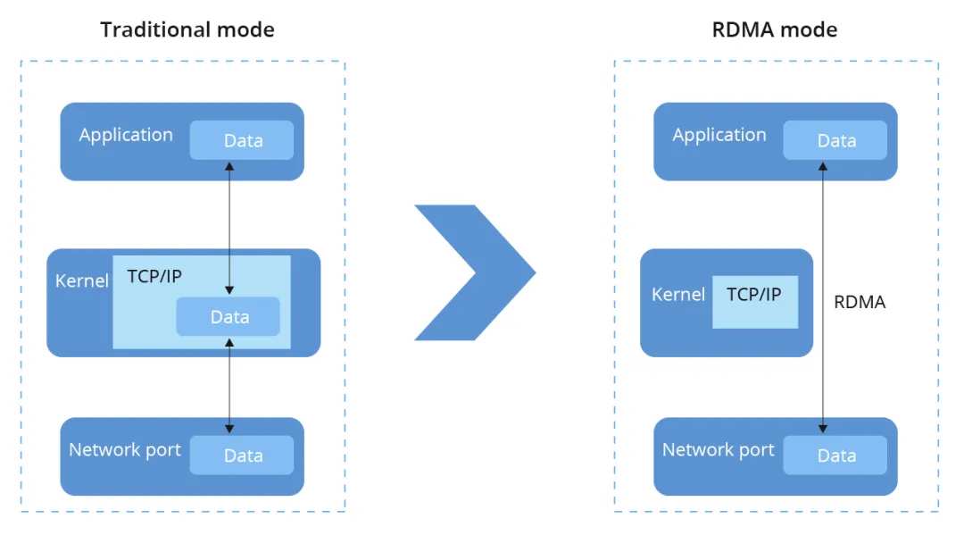 在这一大背景下,全新的RDMA网络协议(远程直接内存访问)应运而生。顾名思义,它可以绕过CPU,直接访问另一台服务器的内存。换句话说,新的交通规则,将高速公路上的人工收费站全撤走了,改设成ETC。