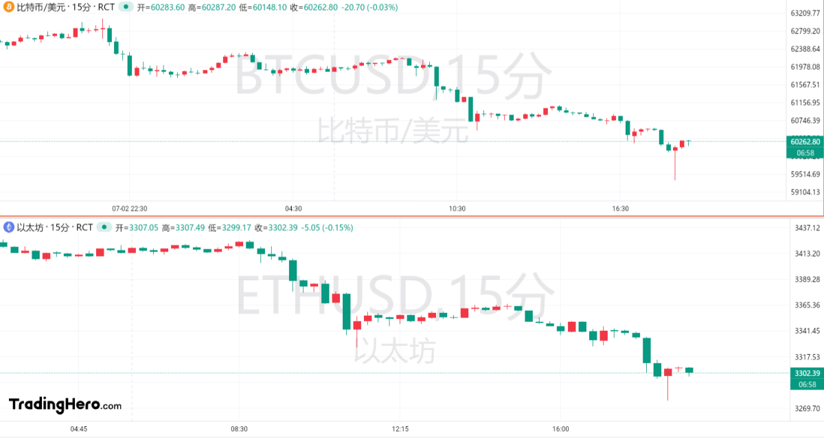 周三,比特币一度下破6万美元大关,以太坊一度跌破3300美元关口。比特币价格在过去一个月里一直在挣扎,下跌了近15%,因为人们担心“真正的修正”。