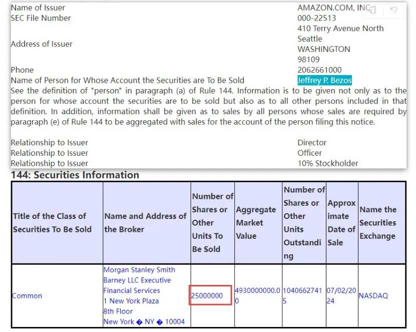 望着“高高在上”的股价,亚马逊 (AMZN.US)创始人又忍不住套现了!