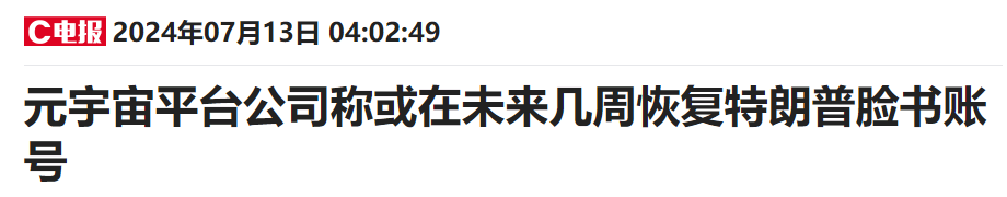 在周五,Meta全球事务总裁Nick Clegg更新了协议,“作为共和党候选人的特朗普将不再受到加重的封号处罚”,“我们认为美国人应该能够以同样的方式听取每一位总统候选人的意见。”
