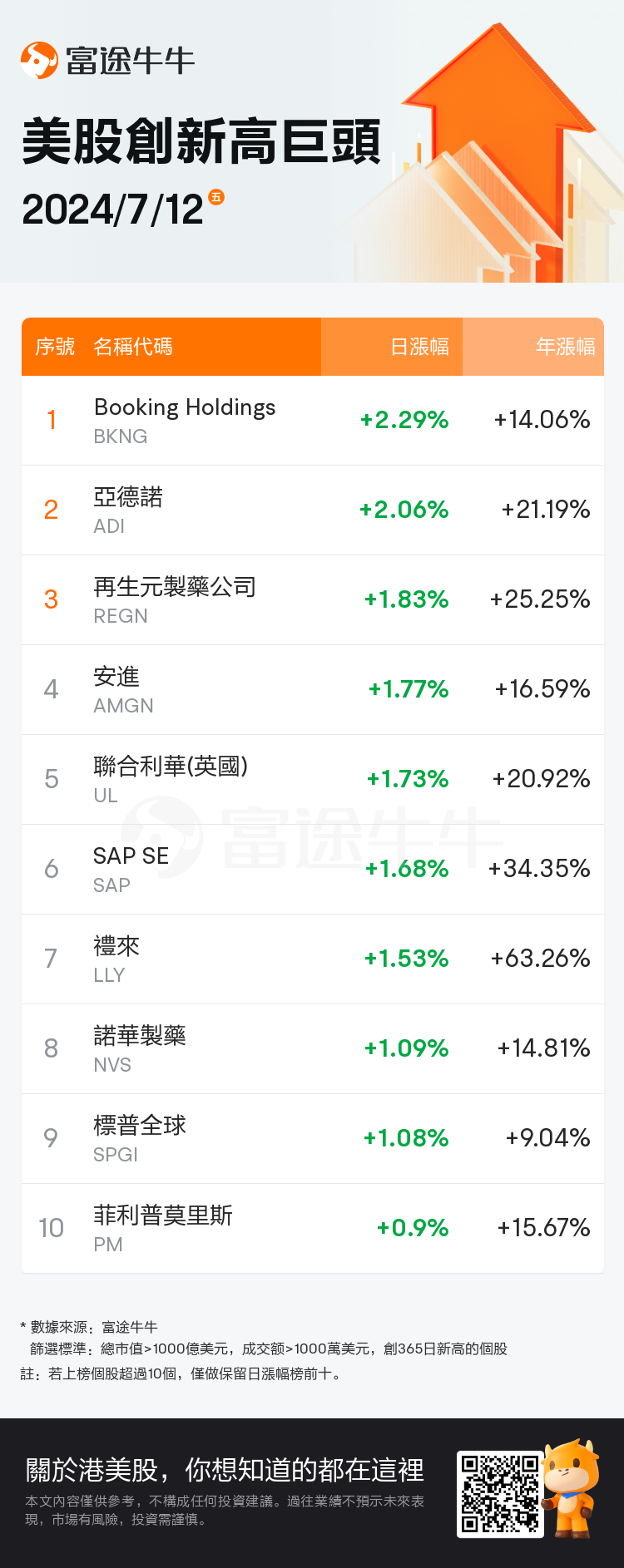 4、多家医药巨头创新高!再生元制药公司 (REGN.US)、安进 (AMGN.US)六日连涨,齐创新高;礼来 (LLY.US)再涨1.53%,市值稳坐9000亿美元;诺华制药 (NVS.US)涨超1%,大摩上调其目标价至114美元。