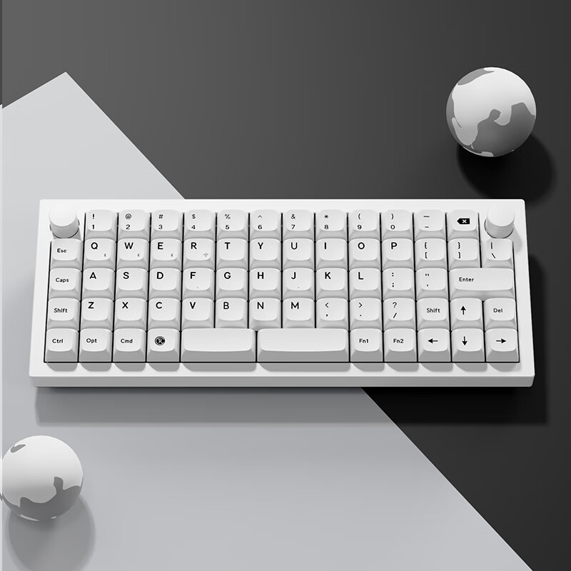该键盘采用双旋钮设计,支持调节音量大小 / 自定义,配备 XDA 单面热升华 PBT 键帽支持热插拔,拥有 22 种 RGB 背光灯效,支持微调色调。
