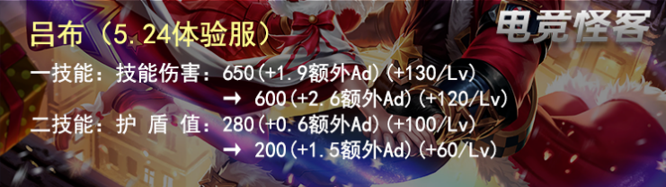 幅度不算小,看来策划还是不愿意看到吕布成为一个坦度和伤害兼具的边路英雄。但总的来看,相比正式服还是略微有一点加强的, 毕竟一技能伤害的AD加成并没有回调。