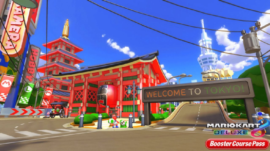 第二类则是手游原创的地图 ,以“城市赛道”为主。 毕竟游戏的副标题就叫“tour ( 旅行 ) ”,自然是在世界各地穿梭。 如今《马车8DX》DLC第一弹中的“巴黎兜风”和“东京赛道”就是手游版原创的地图。