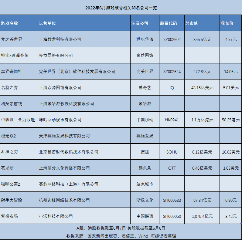 《每日经济新闻》记者注意到,在本次获批的60个游戏版号背后,出现了至少12家知名企业及上市公司的身影。 既有世纪华通、完美世界等老牌上市游戏公司,也有米哈游、波克城市等未上市的知名游戏企业。此外,两大通信运营商中国移动与中国联通、视频平台爱奇艺、门户网站搜狐、内容平台趣头条等上市公司旗下均有游戏产品获批。