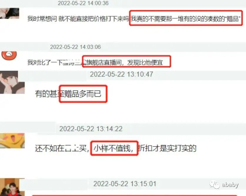 还有网友发现,他不仅在直播间内部涨价,有些商品卖得比品牌直播间还要贵。有人晒出在李佳琦直播间和官方购买的价格对比,价格足足高出了3倍之多!比起降价优惠,李佳琦现在更经常选择送小样和赠品,被质疑是在敷衍消费者。