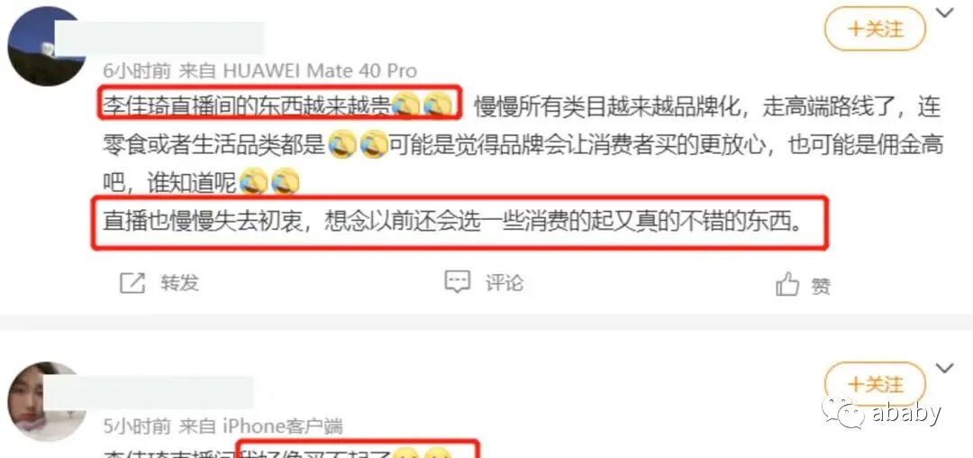 其实最近李佳琦的风评已经有些下滑的趋势了,有越来越多的网友发现,在李佳琦直播间买东西能拿到的优惠越来越小,网友表示:大概是因为他的抽成越来越多,佣金也越来越高,商品就开始普遍涨价,早就不是最初那个努力给网友福利的李佳琦了。