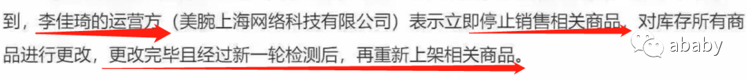 随后,李佳琦的运营方进行了回应,表示会立刻停止销售商品,对库存所有商品进行更改,更改完毕且经过新一轮检测后,再重新上架相关商品,目前李佳琦方也已经向有关部门提交了整改报告。
