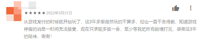 连应用商店的评论区,都是一水的好评,和那些吃相难看的氪金手游关服后的光景截然不同。