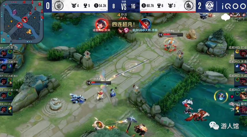 第3局,杭州LGD大鹅前期打得不错,破掉双边外塔,但在进攻时候被AG反打一波,未央的娜可露露连续拿到人头,一诺的马可波罗和爱思的瑶也是配合得很好,在中期各种击杀对手,LGD虽然靠防守战稳住了局势,在最终的决胜团中未央的娜可露露完成收割节奏拿到四杀,AG也以3比0的比分拿下了这场比赛的胜利。