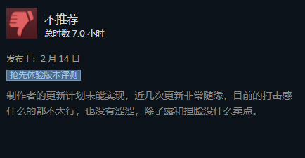 对于那些不能啪啪啪的半吊子黄油来说,没能变成一款正经黄油是玩家眼中永远的遗憾。同样是传统玩法+黄油的产物,三消游戏《Mirror2》也曾因其6.6元的超低价和“耐用”的美少女人设受到了广大网友的欢迎。但在发售几个月后,游戏却迎来了一波差评,主要是由于几次更新后虽然添加了新剧情、新的家园系统,但众多LSP们翘首以盼的涩涩补丁始终遥遥无期,这自然会引来玩家们的不满。