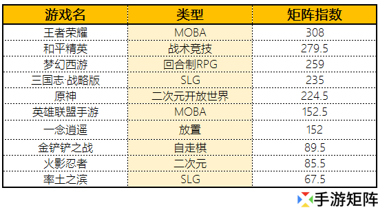 可以看到,腾讯旗下的游戏产品依然强势,在5月Top 10中,除了继续霸占榜首的《王者荣耀》和第二名《和平精英》外,《英雄联盟手游》《金铲铲之战》和《火影忍者手游》也都在榜单上占据了自己的一席之地。至于其他厂商的游戏,《梦幻西游》依然稳居Top 3,而《原神》《三国志·战略版》和《一念逍遥》也留在了5月的Top 10阵容里,继续在榜腰位置你追我赶,而《率土之滨》则取代了在4月位居第十的《问道》,成功突围进入Top 10。
