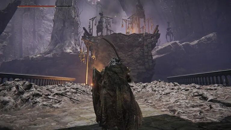 《艾尔登法环》巨大的高度差,除了是为了场景恢弘感与大型敌人所设计,在许多时候也用来限制玩家的移动范围(玩家会摔死或跳不上去),借此 达成隐性的难度区域、探索范围切分 ,比起墙壁或者任何物品进行阻挡,用高度差限制探索范围之余还可以让玩家预览其他地区的风貌,增添期待感。
