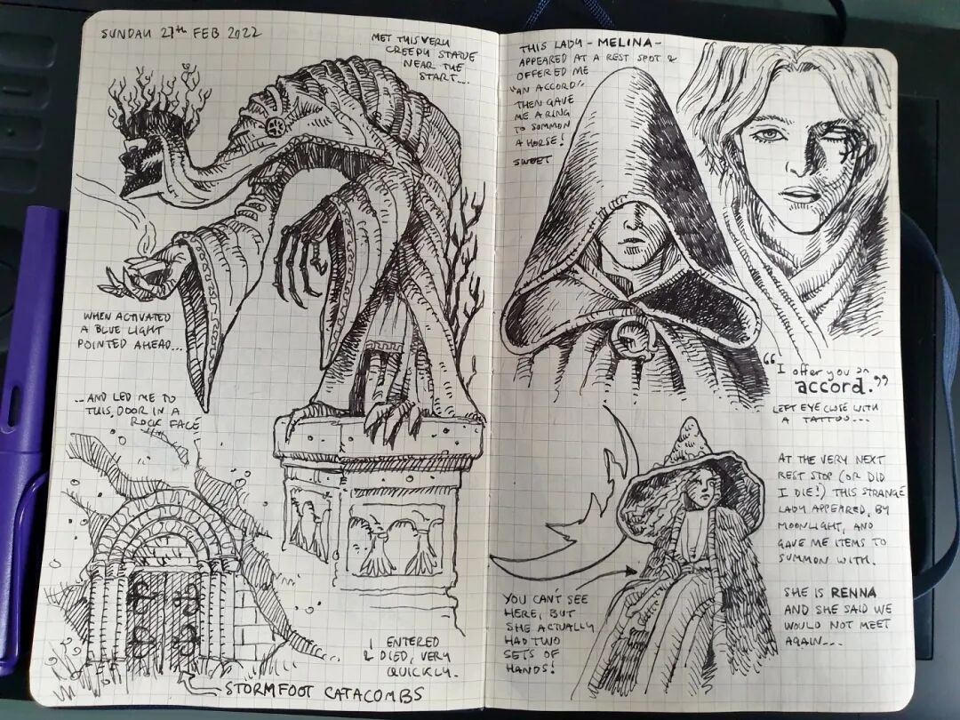 由玩家 Ste Pickford 自行绘制的冒险笔记。