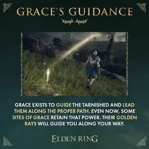 而《艾尔登法环》中赐福的指引是最常见的引导方式,仅会指出主线的大概方向