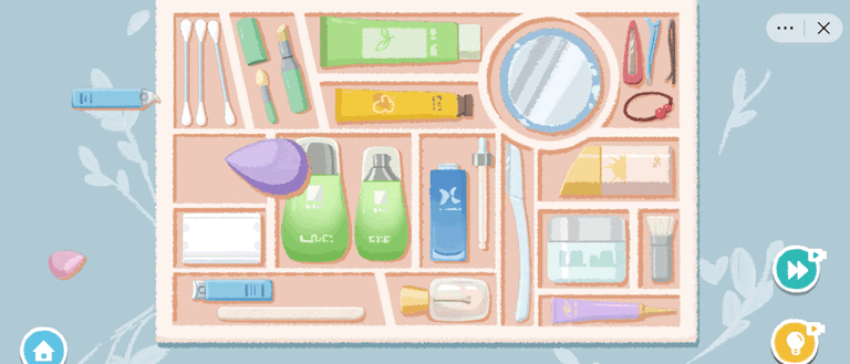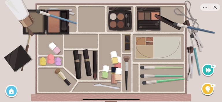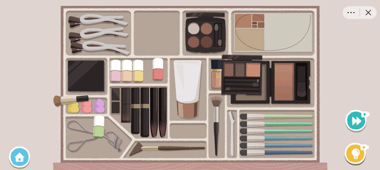 它有三大关卡, 正常模式 、 彩妆专区 、 首席收纳师专区 ,🐔哥比较喜欢玩#杂物抽屉、#化妆盒子、#今日素颜这几个关卡,收纳成就感满满的!