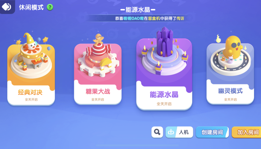 它玩法 模式很多,有 百人战、糖果大战等等 , 还可以添加好友线上一起快乐联机组队!