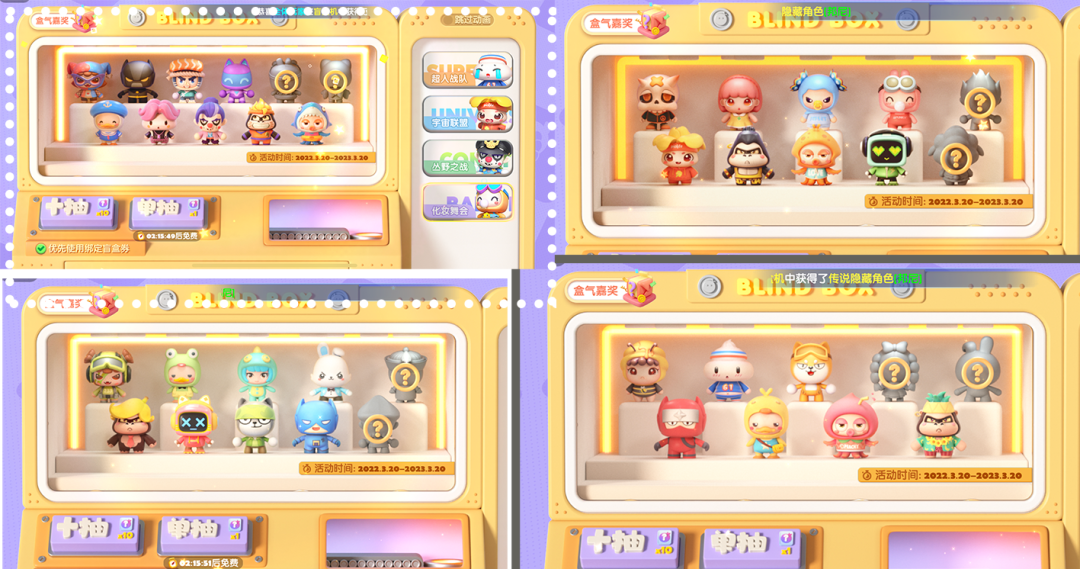 🐔哥最喜欢还是它 抽盲盒角色 的玩法,抽到就能使用该玩偶出战。每个系列都敲级可爱,必须集齐一套!
