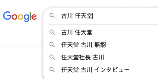 抱有这种担忧的,并不只是我们国内玩家,包括日本玩家也一样。 如果你在谷歌搜索上输入“古川 任天堂”,甚至会自动联想“无能”二字 。
