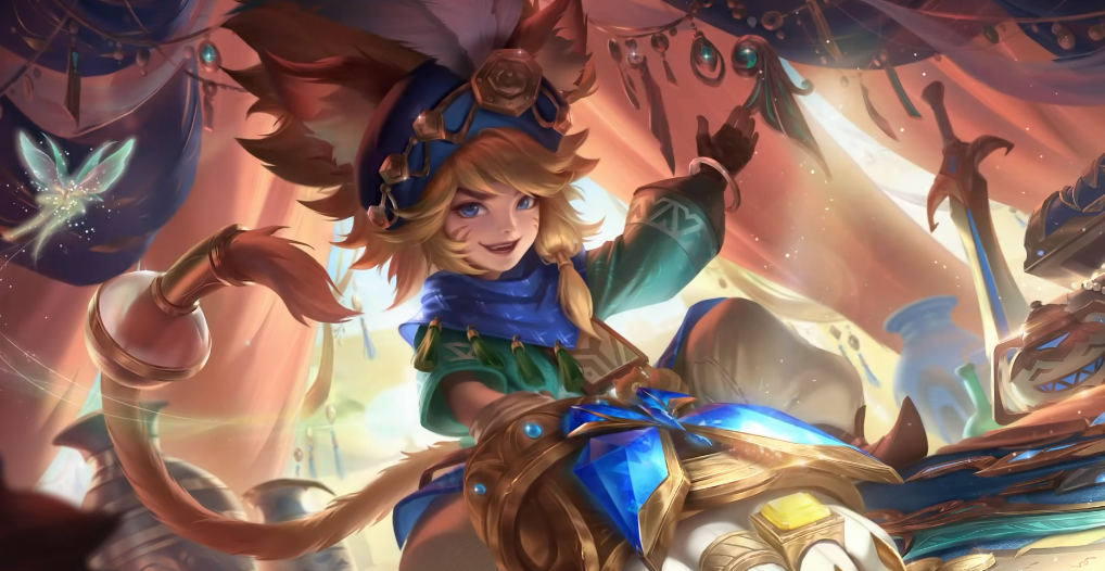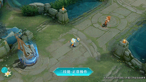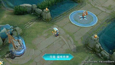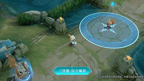 普攻丢出去的是蓝色的琉璃玉石,这是玉成的特产,二技能奔跑时候的蓝色拖尾挺好看的,炸弹改成了蓝色的灯壶,有点像阿拉丁神灯。