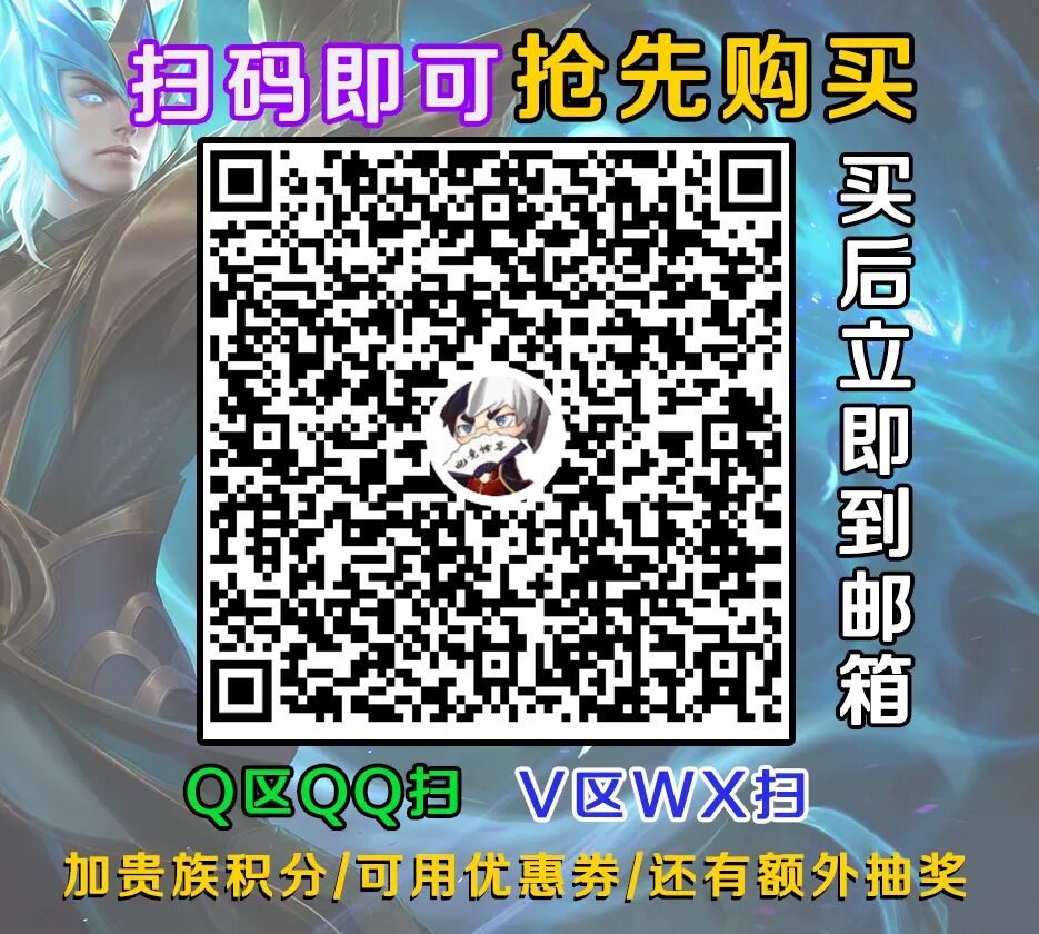然后跟大家提一下, 李逍遥、青龙志、天狼绘梦者 这三款皮肤目前已经在 怪客皮肤小店提前开启返场了! 大家扫描上面的二维码进入小店,购买后立即发到邮箱,还能参与额外夺宝!( 这次夺宝90%几率抽到Q币 )