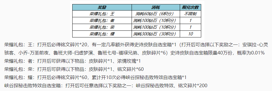 钻石消耗活动又开启了,即日起到6月22日,游戏内消耗一定量的钻石可以获得积分,使用积分即可兑换礼包。