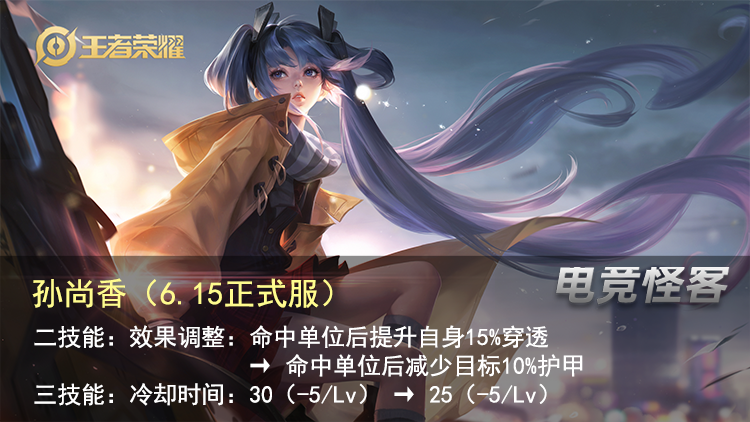 香香这波真的是卸磨杀驴的典型啊 ,当初一口气给香香出五六套星元皮肤的时候官方可不是这样的。 二技能现在命中后改成了减少敌人10%护甲 ,意味着她不能再通过小兵和野怪获得高额穿透了;作为补偿, 略微下降了三技能的冷却时间 。