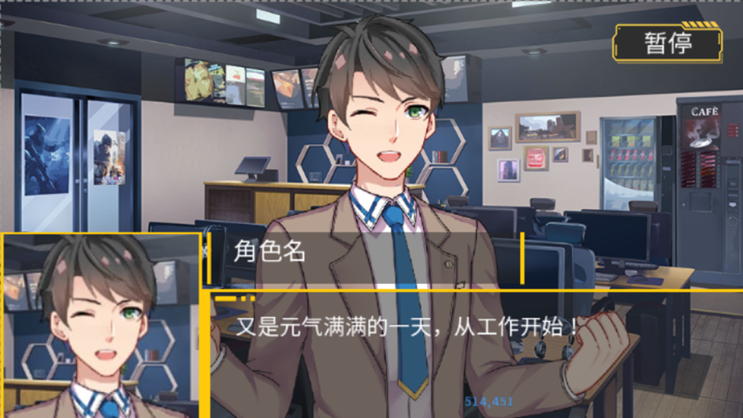 你名叫韩志,是这个游戏的主角,在许多困难下给出你的答语,前几天,你看上了咖啡店的一位女员工,于是开启了恋爱模式,是在她的面前保持沉默?还是直接尝试表白?选择权在于你,记住,不要鲁莽。