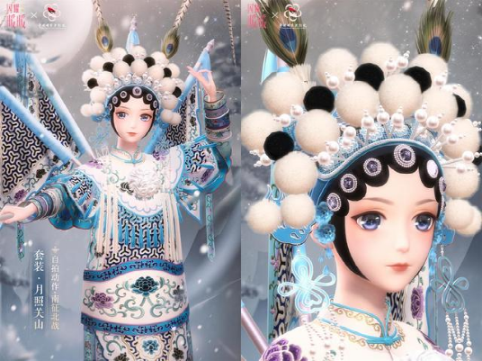 不只是《王者荣耀》,《闪耀暖暖》也曾在2019年与国家京剧院合作,推出《杨门女将》穆桂英的京剧服饰(行头)“月照关山”。