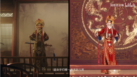 游戏与戏曲的融合,既有前面提到的《决战天策府》《神女劈观》这类“新谱一曲”的作品,也有围绕经典唱段在形式上的新包装。传统戏曲的特点是年代久远,唱词节奏缓慢,故事情节较为单一,但是不少传唱度高的作品,在戏曲表演的张力和美学层面的价值上更为突出,以它们为出发点去保留和传承戏曲,可以更容易为年轻人所接受。