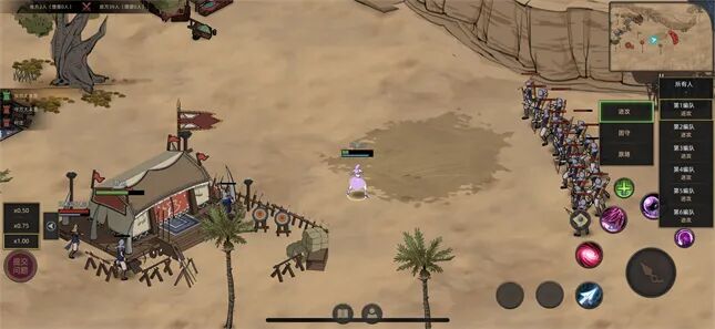 《部落与弯刀》手游中单打独斗只是玩法的冰山一角,游戏中还可以招募士兵,培养自己的部队,与敌方势力展开大规模攻防战。我们要学会编辑小队成员,并在对战中活用命令调整部队行动和站位。目前测试版中命令仅限于进攻、防守、跟随三种,我们需要先让部队跟随至目标位置,然后输入防守命令才能固定站位。这套操作虽然逻辑明确,但整体较为繁琐,特别是进入后期大量部队需要换位置,而敌人的进攻速度又很快,就导致经常懒得调整了,一波 A 上去听天由命。个人很希望开发组后续更新中能够优化这部分操作逻辑,让战斗节奏更具策略性。