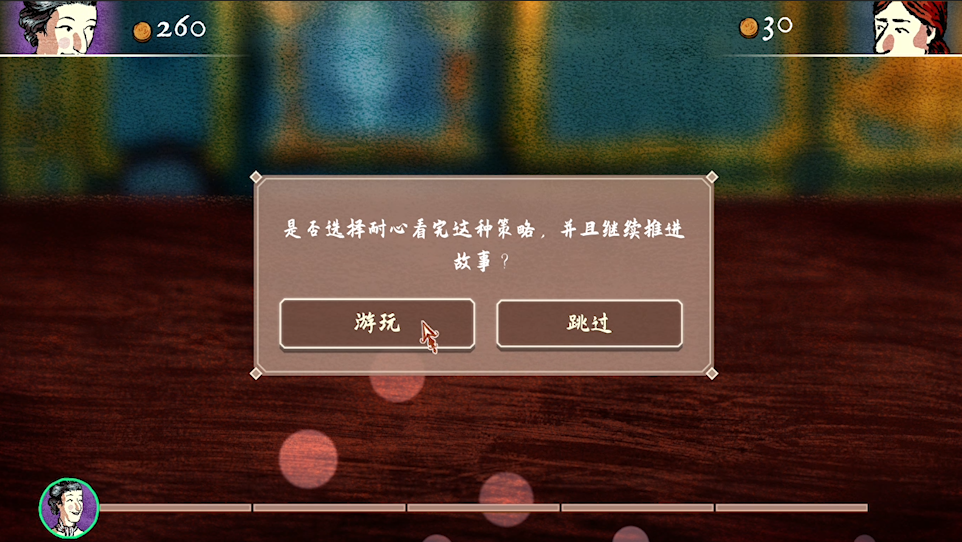 2:游戏的教学关卡也是伴随游戏进程慢慢开放,在伯爵教授主角骗术时,不只是对打牌玩法做一次复盘,在这个过程之中,也会将对方的身份信息,涵盖的性格,深处时代的一些事件资料植入教学部分。基本上,所有玩法学到手,不仅游戏通关了,对于18世纪的法国你也有了一个初步的了解。