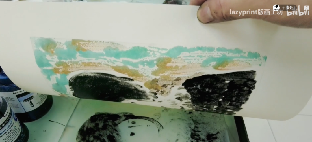 截图来自B站UP主:lazyprint版画工坊,现实美术中的独幅版画作画过程