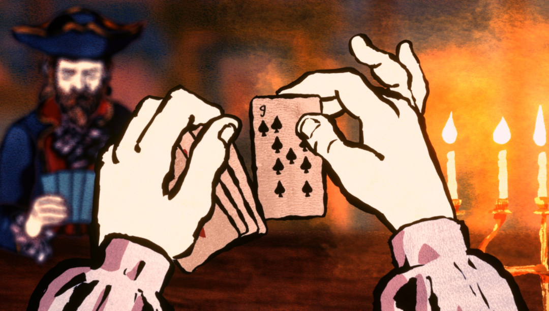 那么,这一次《千爵史诗》是如何依靠一个小的纸牌骗术玩法撬动法国大革命前夕,宏大的叙事背景的?从各种增强代入感的视听语言,再到脚本注入的细节设计,游戏靠这些细节将游戏撑起来了,接下来就来具体盘点一下这些设计。