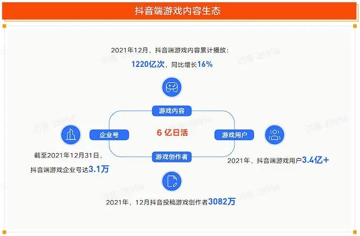 恰逢其时,游戏直播营销凭借迅速壮大的规模、丰富的创意空间和精细化的运营指标成功进入厂商视野,变得越来越流行。《2022游戏内容抖音经营白皮书》(下称白皮书)显示,抖音6亿日活中超过3.4亿是游戏用户,截至2021年12月同比增长12%,高出游戏市场大盘的6.9%增速近一倍。